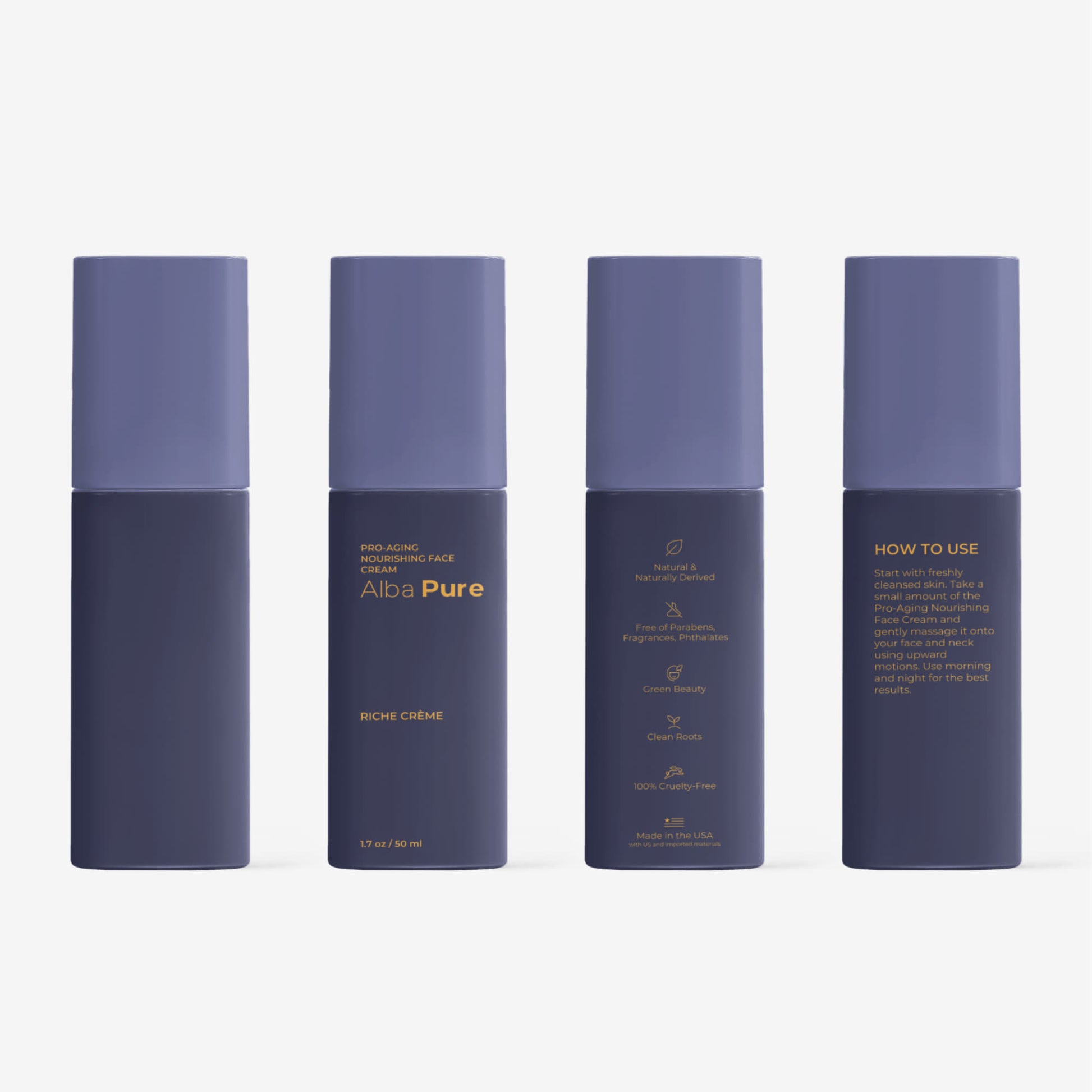 Start with freshly cleansed skin. Take a small amount of the Pro-Aging Nourishing Face Cream and gently massage it onto your face and neck using upward motions. Use morning and night for the best results.
